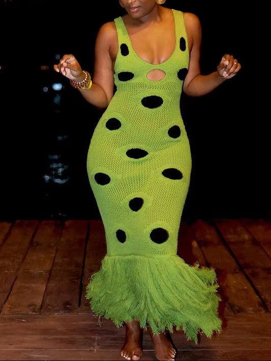 V-Neck Tassel Knitted Bodycon Dress