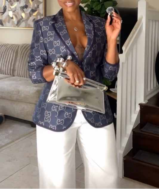 (✔️Free shipping)Luxury Monogram Print Deep V Blazer Jacket