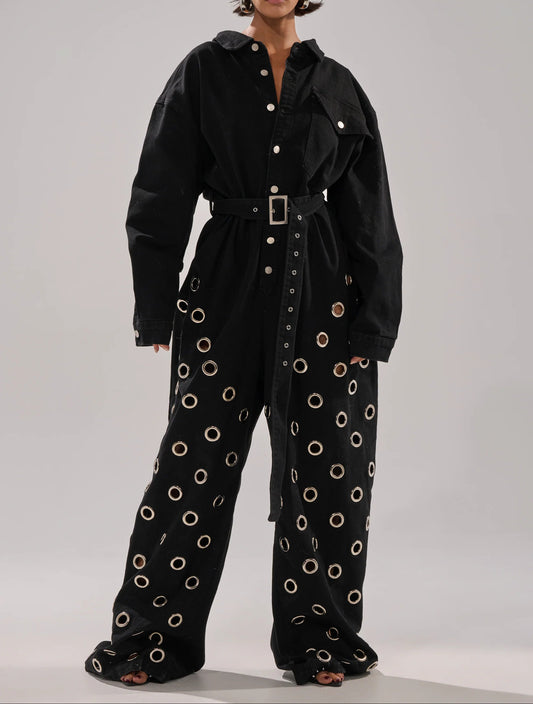 Denim Jumpsuit With Grommets