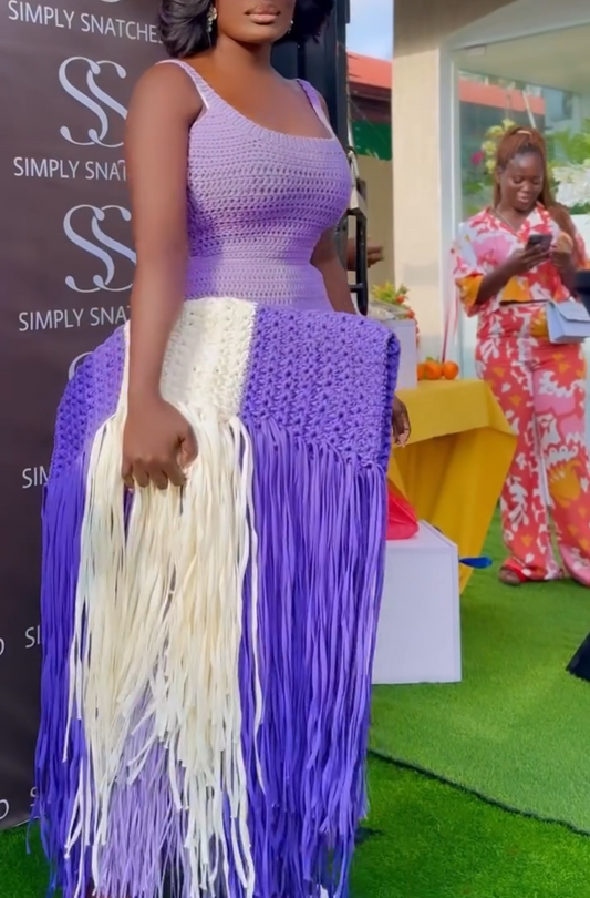 Colorblock Knitted Long Tassel Clutch