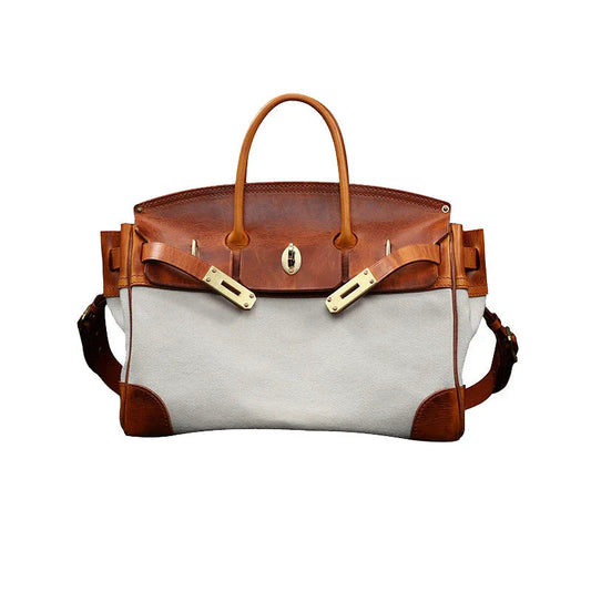 Two-Tone Canvas and Leather Handbag