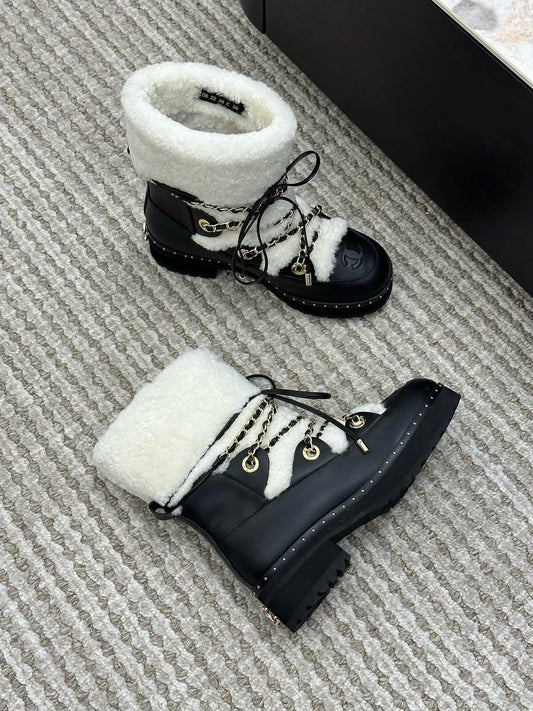 Black Shearling-Lined Ankle Boots