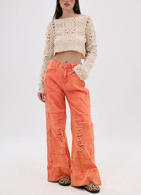 Above Average Distressed Side Snap Jeans