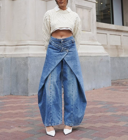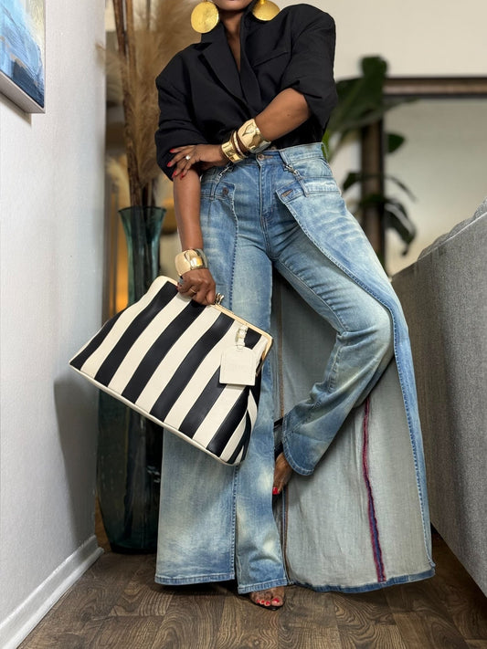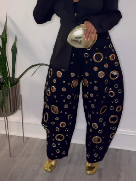 Mid Blue Dome Stud High Waisted Denim Jeans