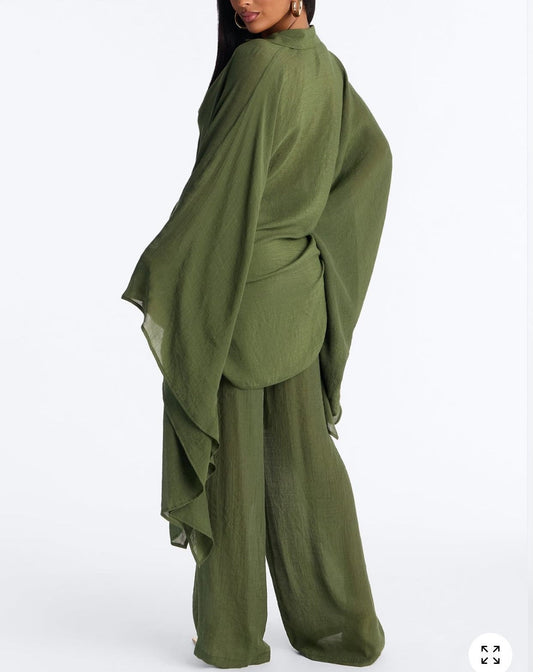 Loose-Fitting Linen Batwing Sleeve Trouser Suit