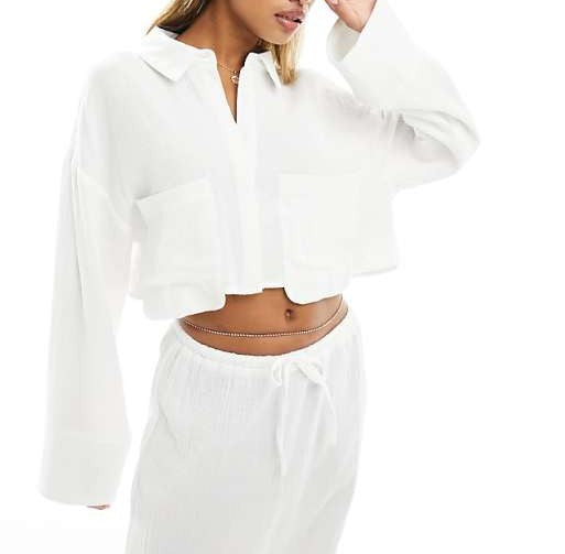 Linen Cropped Tie Back Oversized Shirt